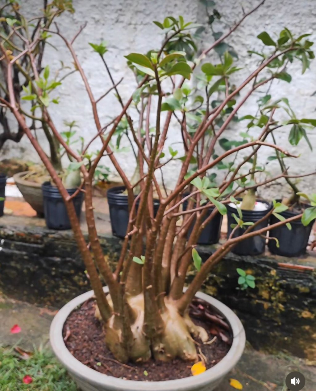 Sobre o Adenium Arabicum - Rosa do Deserto: Ocorre na penรญnsula Arรกbica, pode produzir um tronco reto de ate 4 metros de altura, possui folhas maiores que as da obesum e tem pontas arredondadas as maiores folhas desse gรชnero chegaram a 20 cm de comprimento.