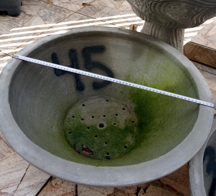 Bacia extra-grande, prรณpria para Rosa do Deserto(multifuros e com excelente drenagem), com 62 centรญmetros de diรขmetro e 28 centรญmetros de altura.